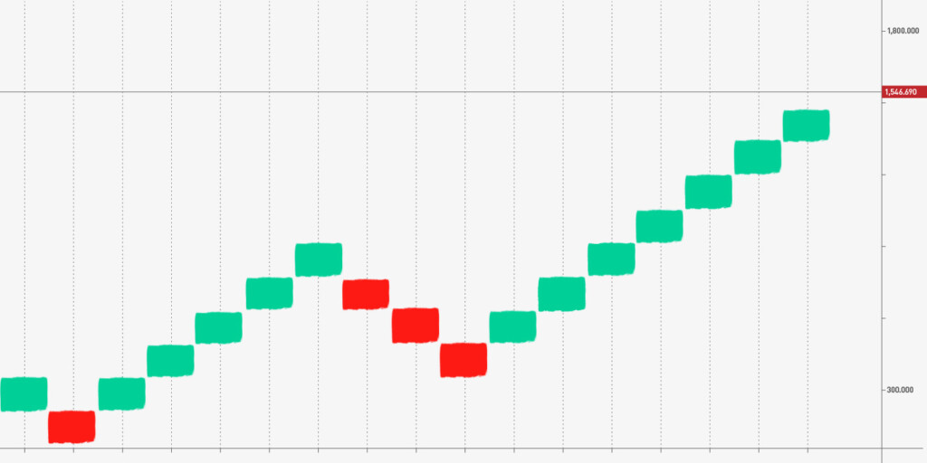 If the Renko chart maintains the same color in a trend, traders should trade it. But if it reverses, then it may be an exit signal.