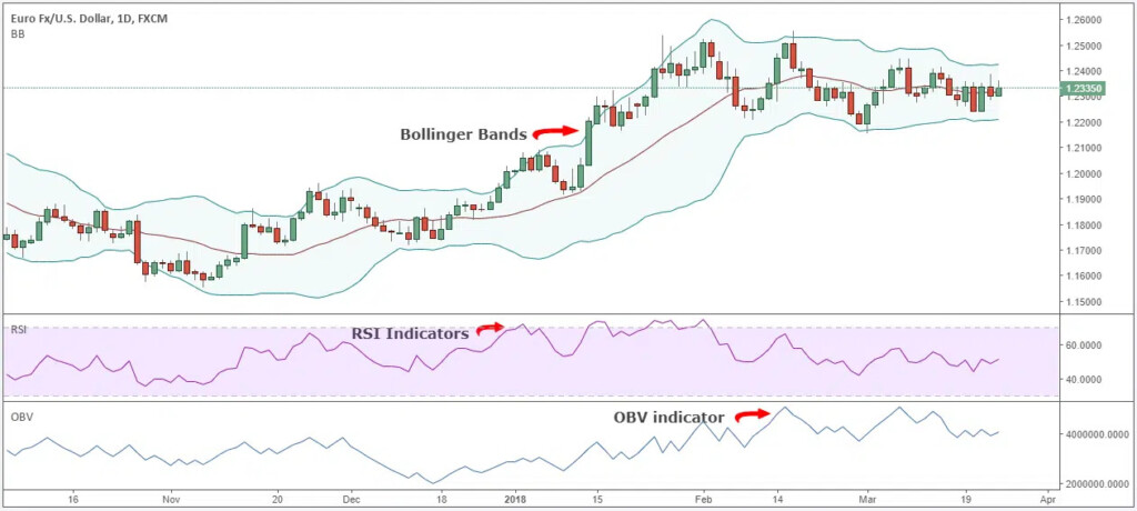 प्रभावी ढंग से ट्रेडिंग करने के लिए तीन तकनीकी संकेतकों का उपयोग करें। ये संकेतक रिलेटिव स्ट्रेंथ इंडेक्स, ऑन बैलेंस वॉल्यूम और बोलिंगर बैंड हैं। एक साथ, वे ट्रेड की गति, रुझान और मात्रा के पहलुओं पर विचार करते हैं, जिस पर सभी ट्रेडरों को ध्यान देने की आवश्यकता होती है।