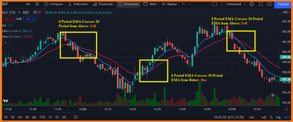 जब तेजी से चलने वाला एवरेज  ओवरलैप होता है या ऊपर से धीमी गति से चलने वाले एवरेज को पार करता है, तो एक बेयरिश का संकेत दिया जाता है; इसलिए फर्स्ट-टाइम ट्रेडर योजना बनाना शुरू कर सकते हैं कि अंडरलाइंग एसेट पर कैसे कम किया जाए। इसके विपरीत, जब नीचे से तेजी से चलने वाला एवरेज धीमी गति से चलने वाले एवरेज को ओवरलैप करता है, तो यह बुलिश का संकेत पैदा करता है। इसका मतलब है कि ट्रेडर अंडरलाइंग एसेट पर लंबे समय तक जा सकते हैं क्योंकि तेजी का स्पष्ट संकेत है। यह ईएमए क्रॉसओवर स्ट्रेटेजी , जिसे पीरियड लाइन के रूप में भी जाना जाता है, ट्रेडर्स के बीच व्यापक है, खासकर शुरुआती लोगों के लिए जो अभी मार्केट को जान रहे हैं।