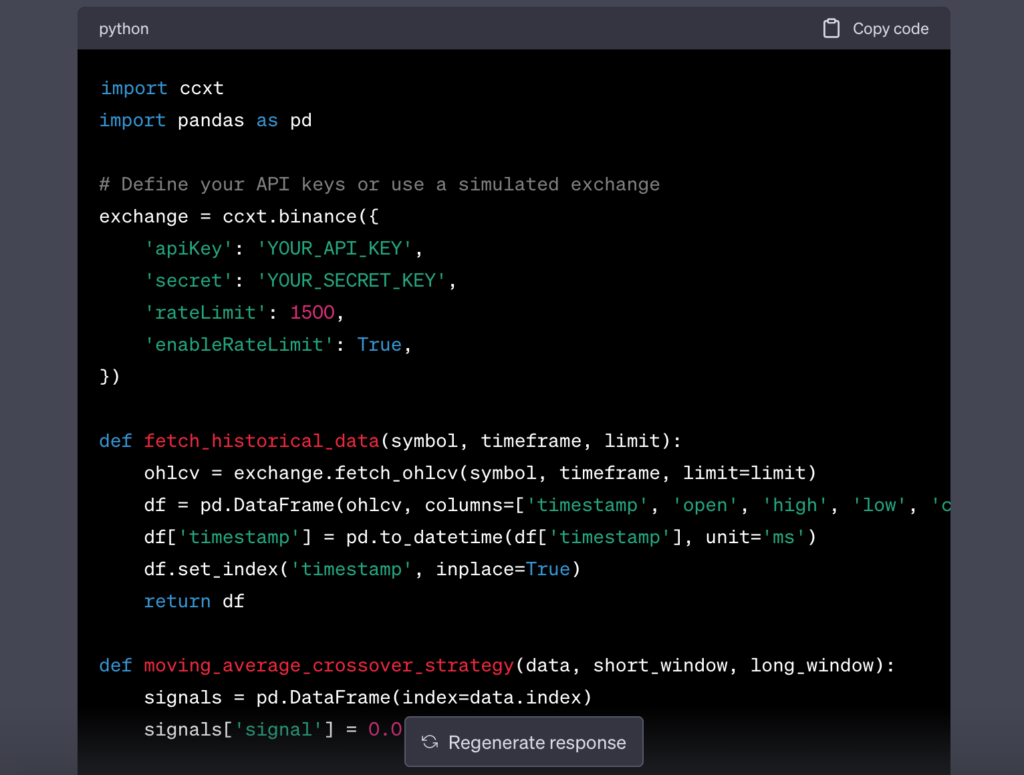 तथ्य यह है कि चैट जीपीटी सितंबर 2021 में अपने ज्ञान कटऑफ के आधार पर उत्तर उत्पन्न करता है, यह दर्दनाक रूप से प्रासंगिक है। वास्तविक समय के मार्केट डेटा, हाल की घटनाओं और डेवलपमेंट तक पहुंच नहीं होने के कारण, बैकटेस्टिंग की सटीकता और स्ट्रैटेजीज़ की प्रभावशीलता से गंभीर रूप से समझौता किया जा सकता है।