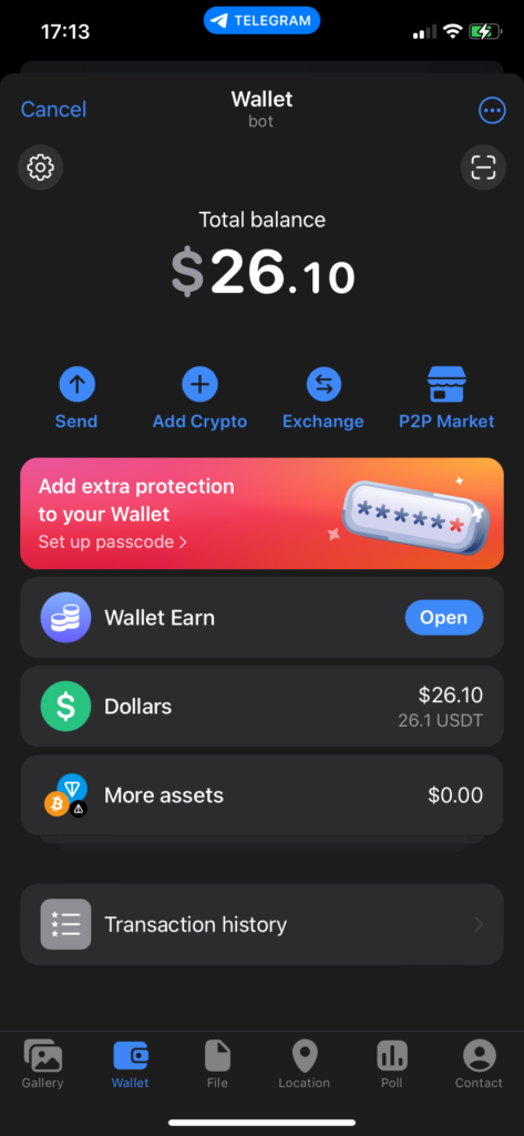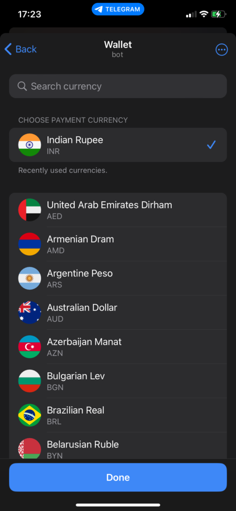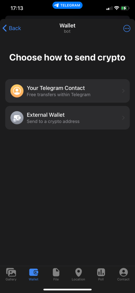 2. Telegram वॉलेट भुगतान विकल्प ढूंढें और उस पर क्लिक करें