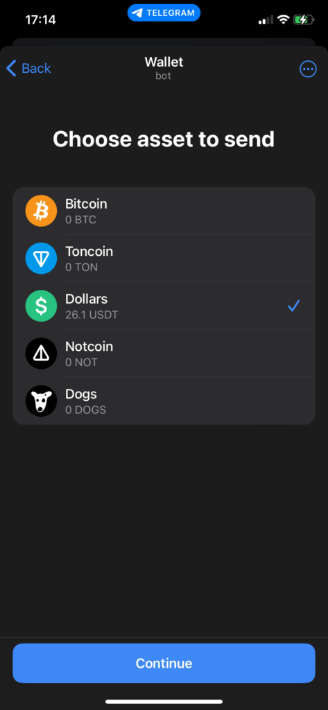 4. आपके वॉलेट में मौजूद कॉइन चुनें (उदाहरण के लिए USDT)