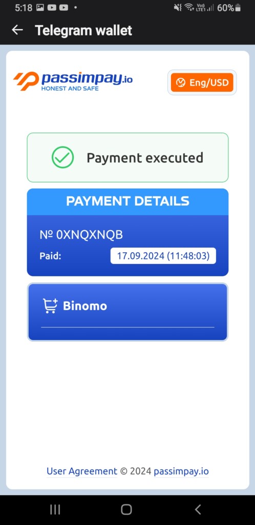 महत्वपूर्ण! यदि आप Toncoins या Notcoins के साथ भुगतान कर रहे हैं, तो प्रदाता के पेज से मेमो को कॉपी और पेस्ट करें