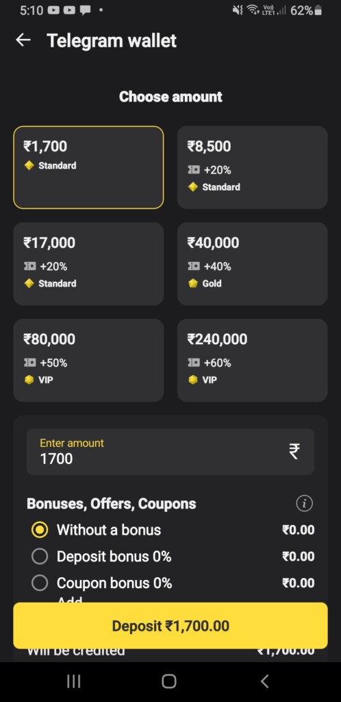 Telegram वॉलेट के माध्यम से जमा कैसे करें