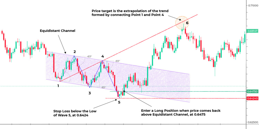 4. Wave 5 (the final wave) should break the channel representing a false or pseudo breakout that later ends within the channel.