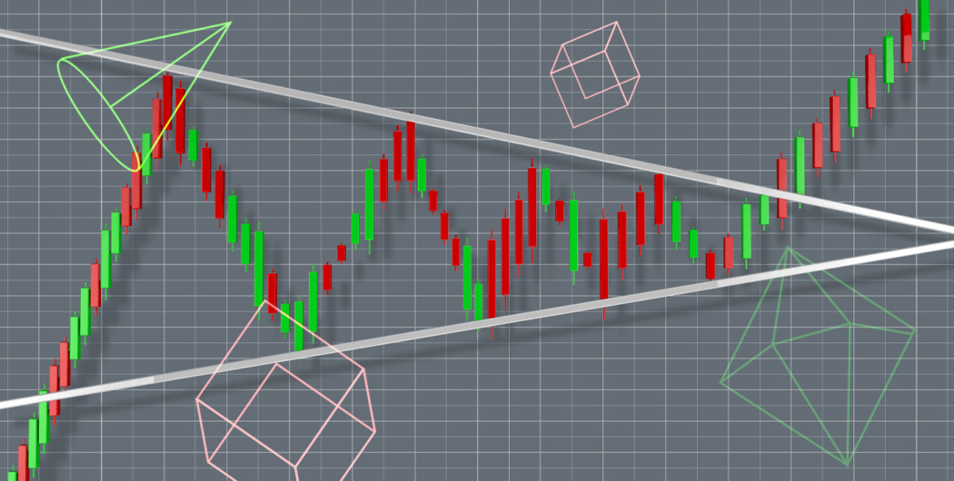 The flagpole in the chart above depicts the preceding upward trend, the pennant pattern formed by the consolidation phase, and the traders’ focus is on the potential breakout of the upper trend line of the symmetric triangle.