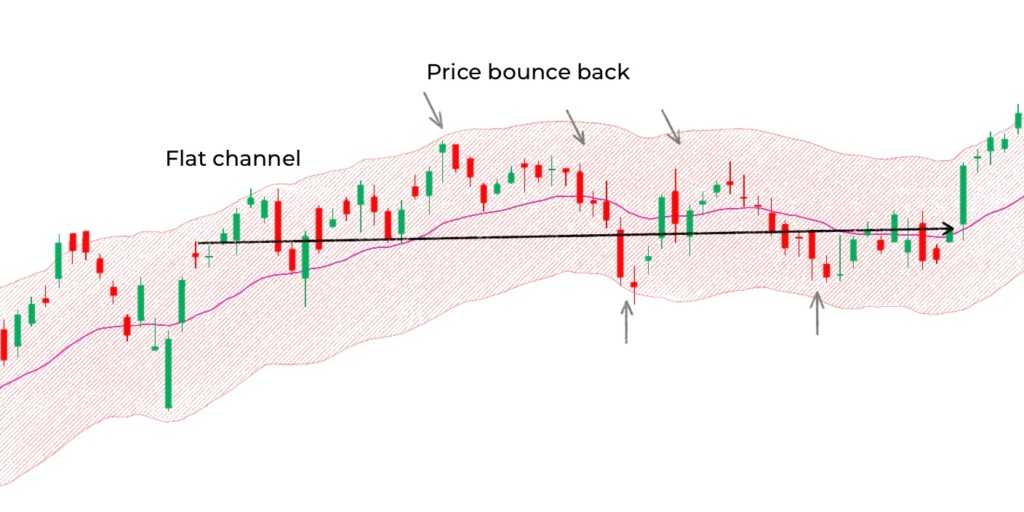 Different readings can also apply when you are following a different market. Usually, if the price remains close to an extreme line, it signifies trend acceleration. You need to look at the direction of the channel to see if it’s going down, up, or sideways.