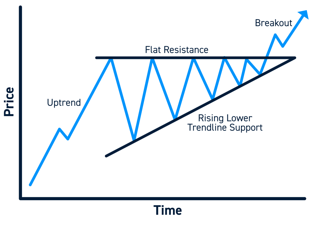 A consolidation phase during an upswing, followed by the possibility of the uptrend continuing, is indicated by an ascending triangle pattern. Suggesting that the uptrend will continue, traders see a price break over the horizontal trendline as a positive indication.