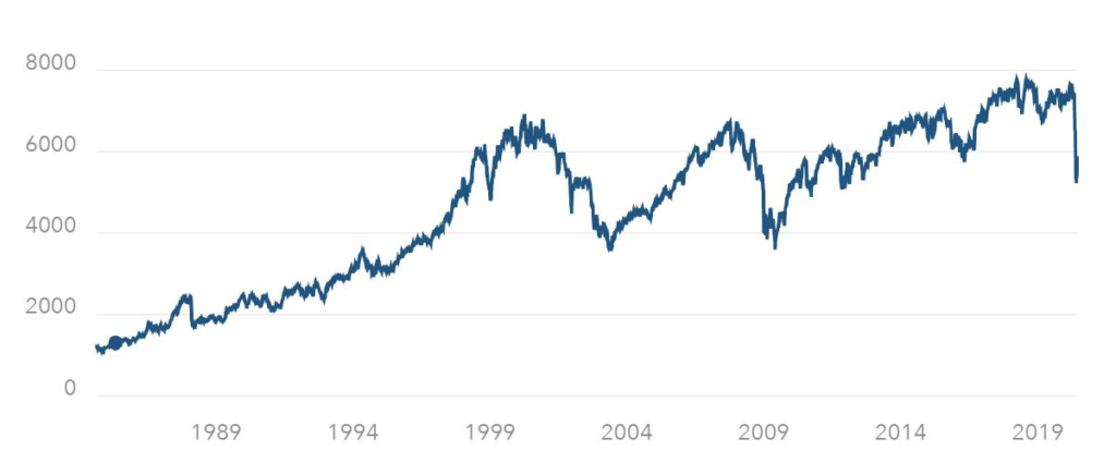 Um gráfico de estratégia de negociação BuzzQuant representando as tendências graduais de geração de Alpha por meio de estratégias de investimento quantitativo de 1989 a 2019 na economia global.