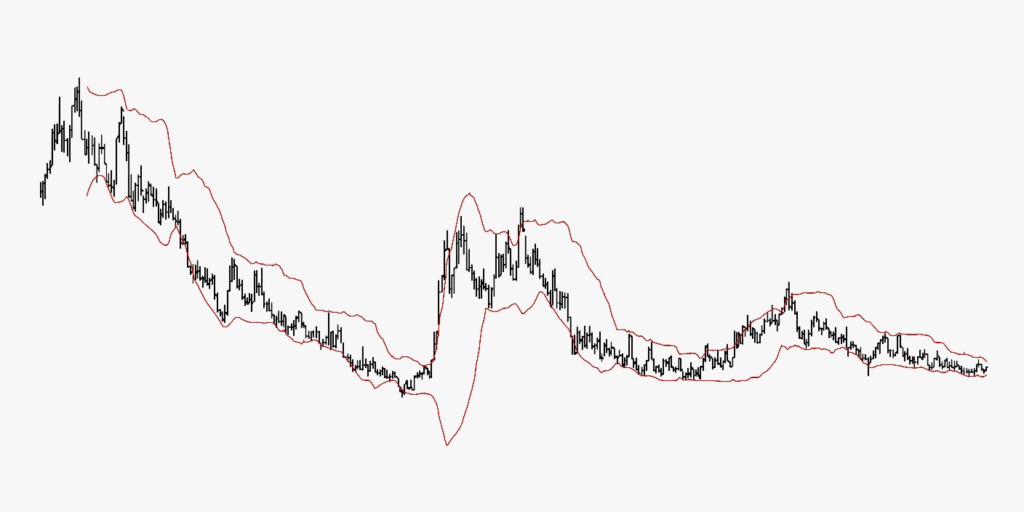 Este indicador de negociação oferece uma faixa de preço onde o preço de um ativo normalmente é negociado. A largura da banda flutua para refletir a volatilidade atual. Quanto mais próximas (ou mais estreitas) as bandas estiverem, menos volátil é considerado o ativo financeiro. A volatilidade aparente aumenta à medida que as bandas se alargam.