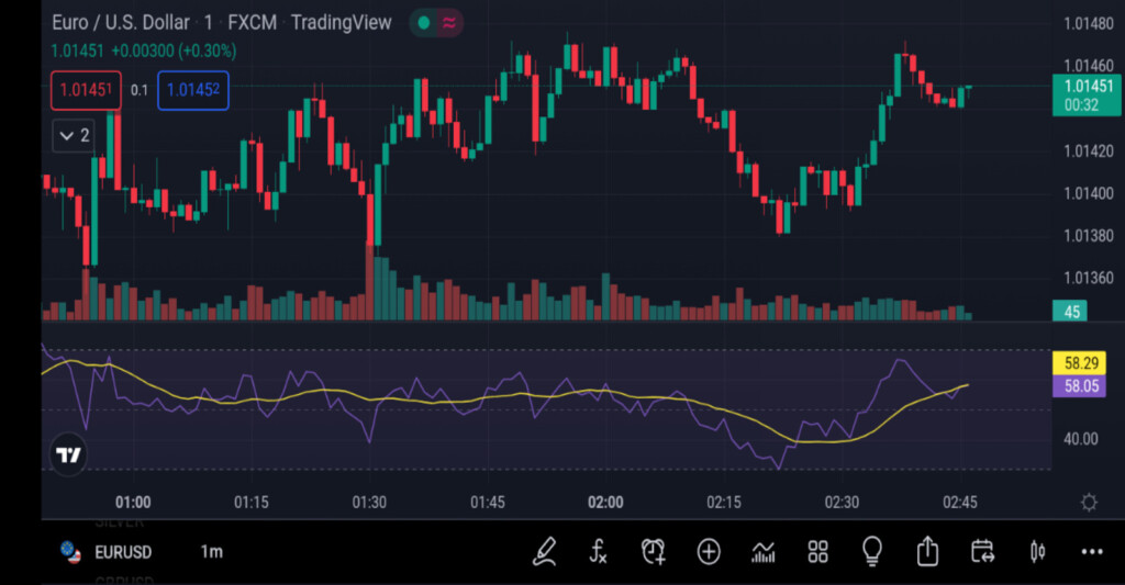 EUR/USD paritesinin $1.02’ye yakınlığını gösteren grafik