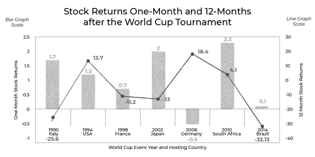 2006, 2010, 2014 ve 2018 dünya kupası etkinliklerine sırasıyla Almanya, Güney Afrika, Brezilya ve Rusya ev sahipliği yaptı. Piyasa analizine göre, dünya kupasının ev sahiplerinin duyurulmasından önceki 20 gün içinde, Almanya ve Güney Afrika’nın   önemli piyasaları   Kümülatif Ortalama Anormal Getiri (CAAR)’de düşüş yaşadı. Buna karşılık, Güney Afrika piyasaları duyurudan sonraki 20 gün içinde olumlu bir yükseliş trendi yaşarken, Almanya duyurudan sonraki beş gün içinde kazanç yaşadı.