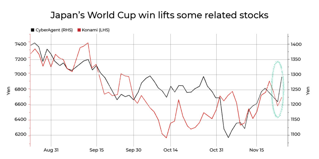 Uzmanlar, dünya kupası etkinliklerinin sonucunun farklı finansal piyasalardaki yatırımcıları etkilediği konusunda hemfikir olsa da, ana piyasalardan bazıları     piyasa trendlerinde gözle görülür değişiklik yaşadı. Bu piyasalar şunlardır:   :