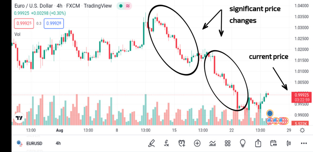 Yukarıdaki grafik, dengesizlikleri temsil eden farklı önemli fiyat değişikliklerini göstermektedir. Bu nedenle, arz ve talep bölgelerini bulurken her zaman önemli fiyat değişikliklerini kontrol edin.