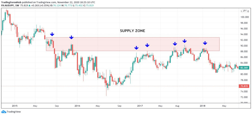 Bir tedarik bölgesi, fiyat grafiğinde yatırımcıların sattığı bir alandır. Bu alan her zaman mevcut fiyatın üzerindedir ve en yüksek satış potansiyeline veya ilgisine sahiptir.