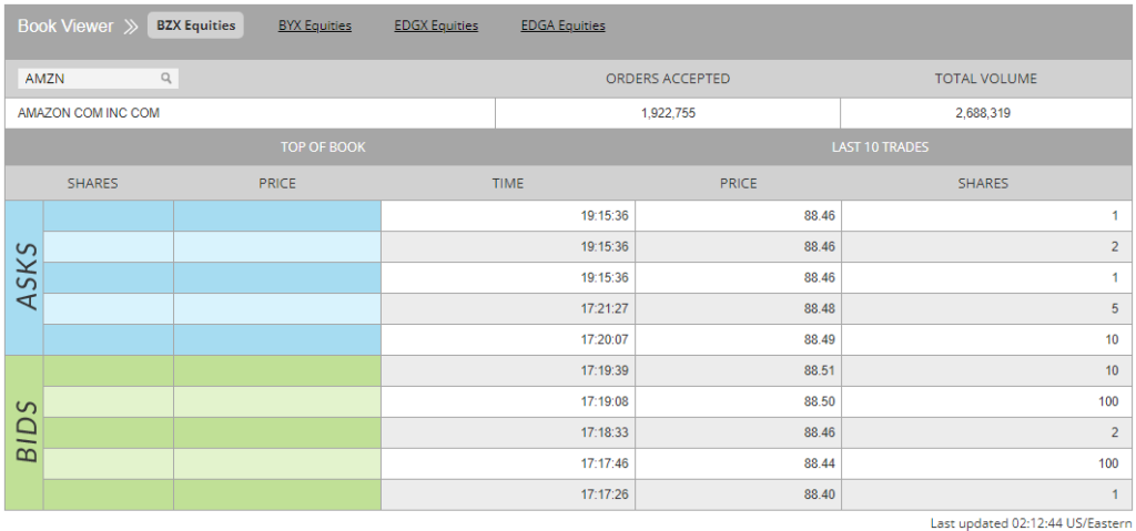 Note that different exchanges and trading platforms may have different layouts for their order books. Here’s one from Cboe.